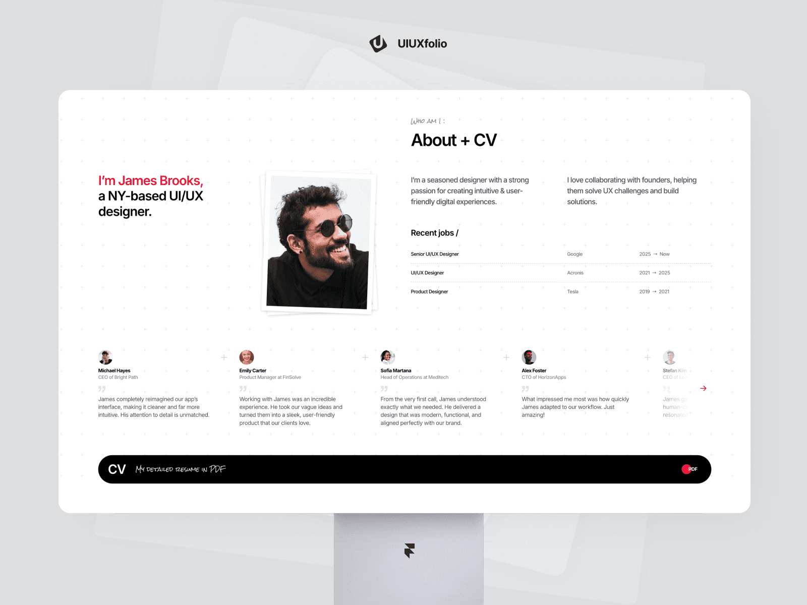 UIUXfolio® is a Framer template built for UI/UX designers who want to showcase complete case studies with clarity and impact.